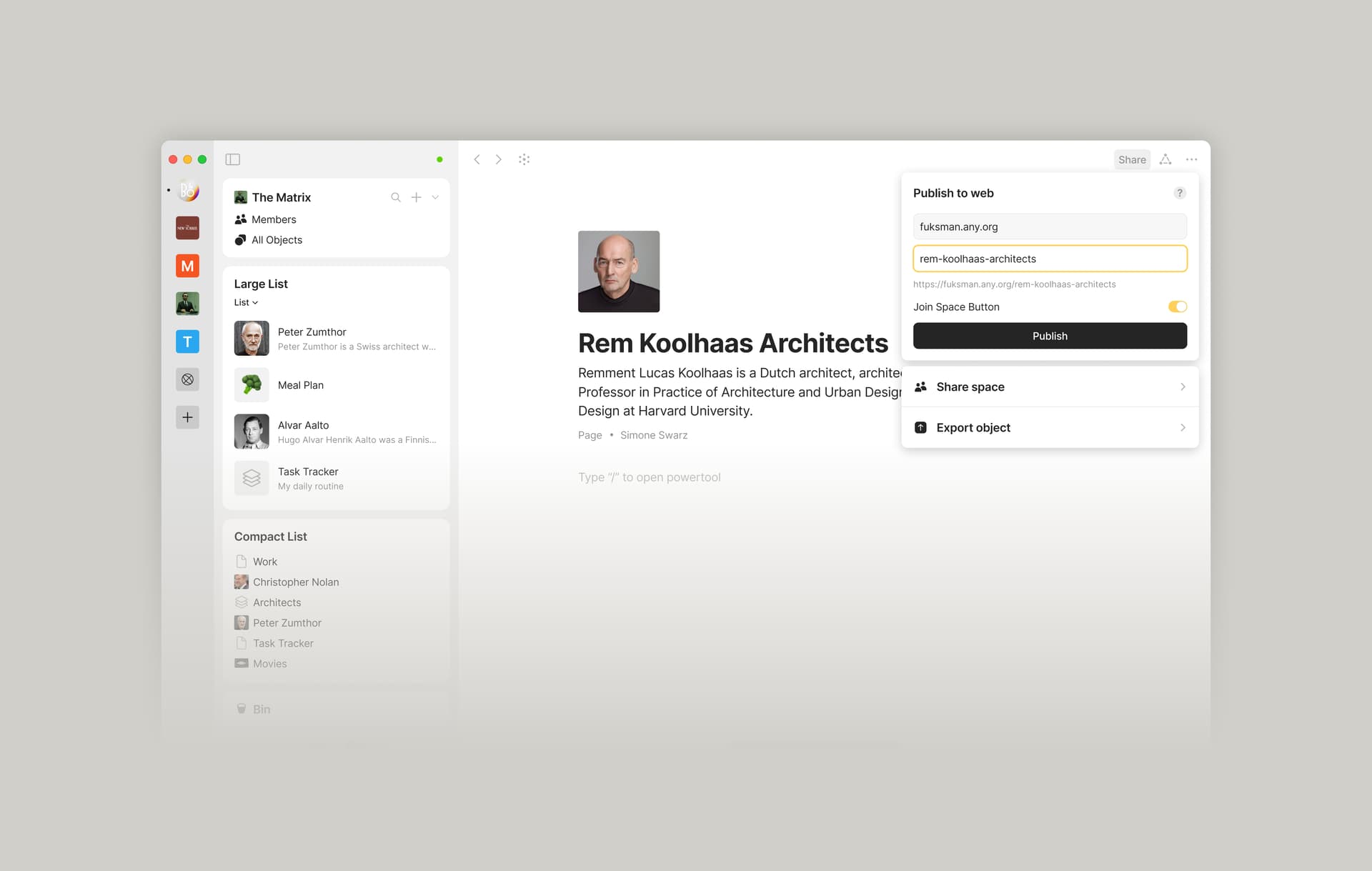 You can now publish Objects as static web pages (HTTPS links) on your personal subdomain if you have *any name. These pages are uploaded to our servers as unencrypted HTML files.