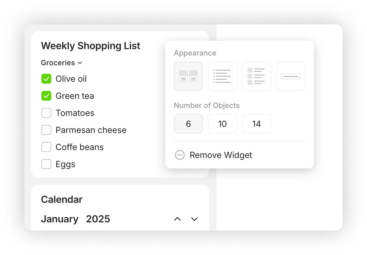 Simplified Widget Settings Menu