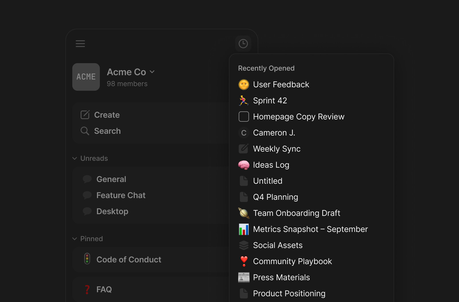 Space Channels now hold more than one conversation at a time. Start topic-specific chats right where your work happens – discussions now live alongside your notes, tasks, and documentation as part of your knowledge graph.